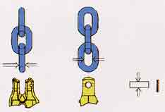 | ●2点吊り・チョーク吊り/バスケット吊り 組み合わせ例 グラビックシステムなら、シンプルな構成でショート ニング・チョーク機能兼用のシステムが可能です。 BDG(TG2-CL) マスターリンクMFにダブルグラブCGDを結合し、 チェーンKLAの他端にはダブルロックCLDを接続し、 バスケット吊りに対応しています。 使用荷重については別表Bをご覧下さい。 BD(TL2-CL) チェーンKLAに両端にダブルロックCLDを接続し マスターリンクMFに結合しています。ショートニング 機能が不要の場合にご使用ください。 バスケット吊りに対応しています。 使用荷重については別表Bをご覧下さい。 |