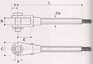 フォークエンドスウェージ+アイボルト+クロスクリップ