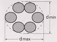 局部的な押しつぶしによる偏平があるも の。ノギスで短径d minおよびd maxを測 定したときd max/dmin≧1.5となったもの。 ![]() 《参考》つぶれによる強度低下率 @程度が軽い場合は、殆ど無い。 A上記廃棄基準に達した場合は、 20〜40% |
