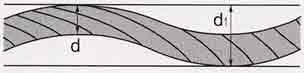 | うねり | うねりの有無を調査する。 | 著しくうねっているもの。 または局部的なうねりの幅(d1)がロープ 径(d)の4/3以上になったもの。 ![]() |