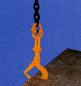 「敷鉄板用吊り具の新しいかたち」 回転機能を装備し、安全性・作業性が格段に向上しました。 ●回転機能により、ワイヤーのほつれやチェーンのねじれを防止。 ●また、移動時に敷鉄板が回転するのを防止し、作業安全に大 きく貢献します。 ●開口部が大きく、敷鉄板の穴に掛けやすいデザイン |
