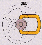 フレノ・リンクボルトは取付面に対して180度、取付軸に対して360度自由に回転します。したがって、ボルトを対象物