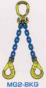 | ●2点吊り・チョーク吊り/バスケット吊り 組み合わせ例 グラビックシステムなら、シンプルな構成でショート ニング・チョーク機能兼用のシステムが可能です。 BDG(TG2-CL) マスターリンクMFにダブルグラブCGDを結合し、 チェーンKLAの他端にはダブルロックCLDを接続し、 バスケット吊りに対応しています。 使用荷重については別表Bをご覧下さい。 BD(TL2-CL) チェーンKLAに両端にダブルロックCLDを接続し マスターリンクMFに結合しています。ショートニング 機能が不要の場合にご使用ください。 バスケット吊りに対応しています。 使用荷重については別表Bをご覧下さい。 |