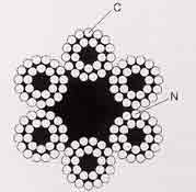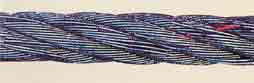| 断線 | 全長、全周にわたりきずの有無を点検する。 ある場合は、山切れ谷切れの状況を入念に 調査し、断線本数を数える。 ![]() C:クラウン断線(ロープ外接円と接する部分 「山断線」の断線) N:ニップ断線(ストランド相互が接する部分 「他に断線」の断線) |