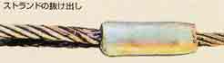 | 抜け出し | アイスプライス:ストランドの抜け出しの兆 候がないか点検する。 アイ圧縮止:片端に凹みが生じたり、抜 け出しの有無を点検する。抜け出しの点検 は目視、マーキング等による。 |