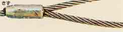| 断線 | ロープを曲げたりしてアイ部分やスリーブ 付根部分の断線の有無を点検する。 |