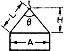 つり角度θの大略を知るには、つり荷の幅をA、フックから荷